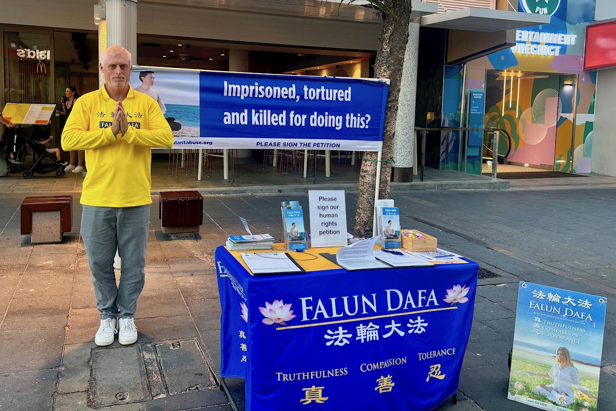جیسون بهطور منظم در نزدیکی سرفرز پارادایز، حقیقت درباره آزار و شکنجه را روشن میکند؛ مکانی که تنها چند قدم با خط ساحلی و بازار کنار دریا فاصله دارد. سرفرز پارادایز مقصدی محبوب است و گردشگران محلی و بینالمللی بسیاری را از سراسر جهان جذب میکند. افراد زیادی توقف میکنند تا بنرهای رنگارنگ درباره فالون دافا را بخوانند و تمرینات بهنمایشگذاشتهشده توسط تمرینکنندگان را تماشا کنند. آنها درباره آزار و شکنجه فالون دافا در چین میآموزند و دادخواستهایی را برای کمک به پایاندادن به آزار و شکنجه امضا میکنند.