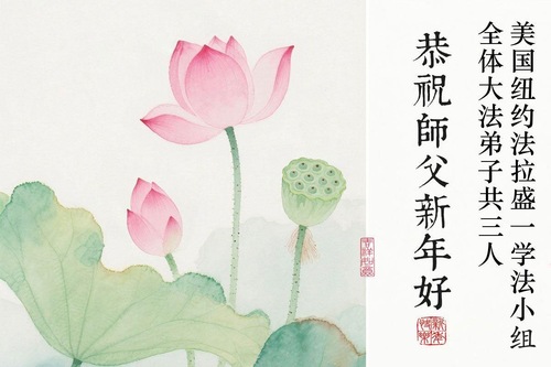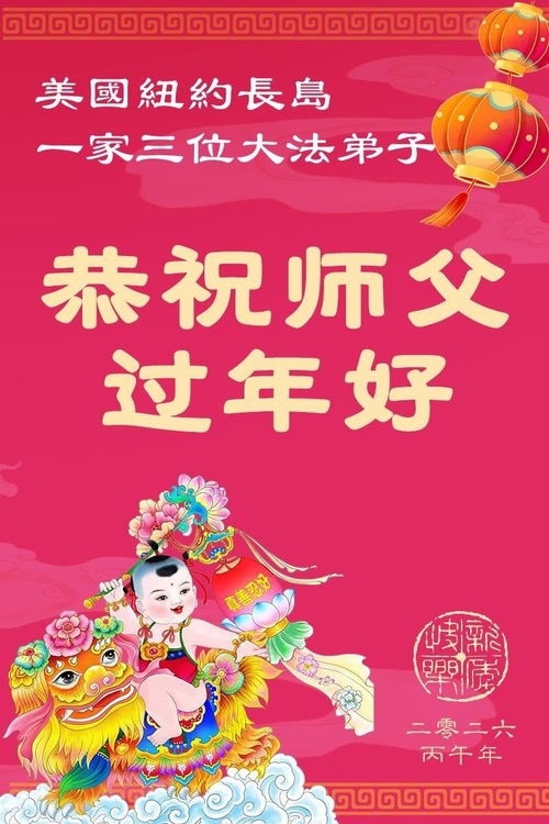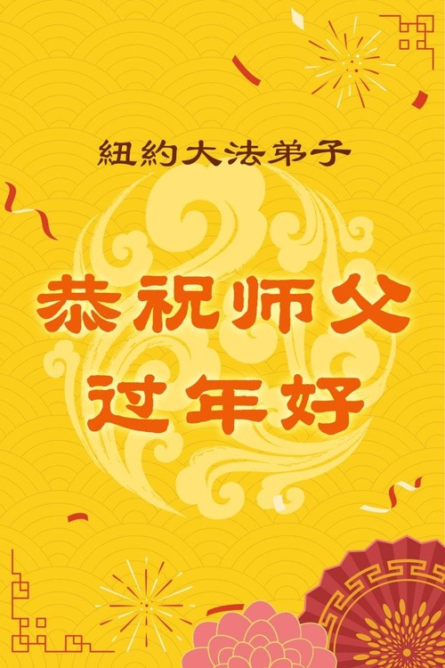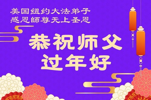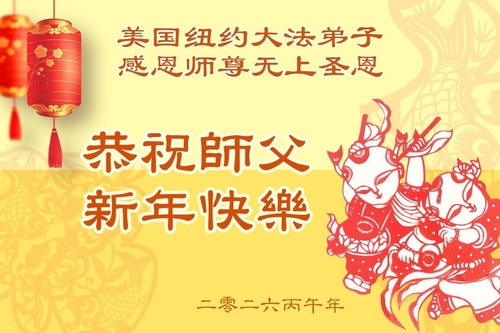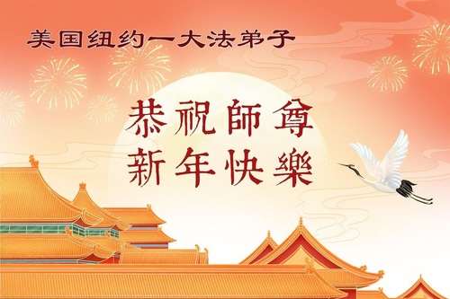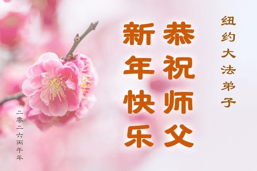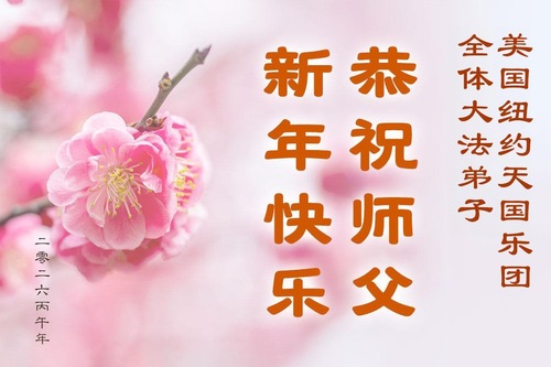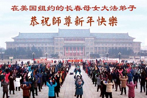 تبریک سال نو به استاد از طرف یک مادر و دختر تمرینکننده در نیویورک که اهل چانگچون، استان جیلین، چین هستند