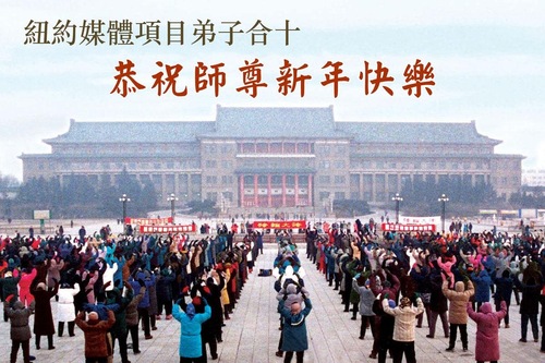 تبریک سال نو به استاد از سوی تمرینکنندگانی در نیویورک که اهل پکن، چین هستند