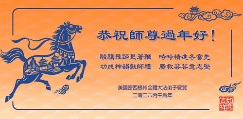 (Minghui.org) تمرینکنندگان فالون دافا از غرب میانه آمریکا، پیامهای تبریک سال نو چینی را برای استاد لی ارسال کردهاند و از استاد برای آموزش دافا به جهانیان تشکر کردهاند. تمرینکنندگان عهد بستند که در سال جدید با پشتکار بیشتری خود را تزکیه کنند و مأموریتهای تاریخی خود را بهتر انجام دهند.