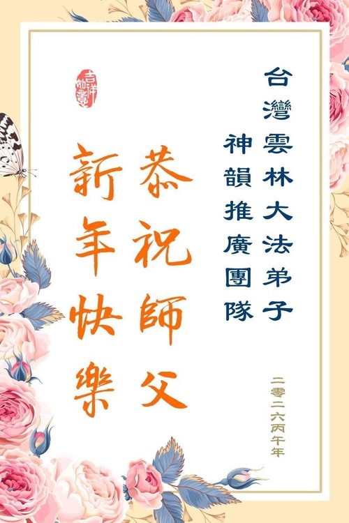 (Minghui.org) برای جشن سال نو چینی ۲۰۲۶، تمرینکنندگان فالون دافا از تایوان و هنگ کنگ پیامهای تبریک سال نو چینی خود را به استاد لی ارسال کردند: