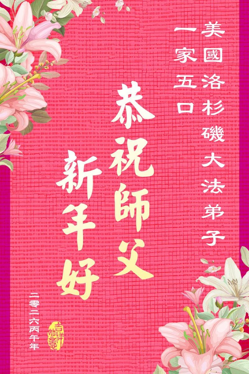 یک خانواده پنج نفره تمرینکننده در لسآنجلس، ایالات متحده، با احترام سال نو چینی را به استاد تبریک میگویند!