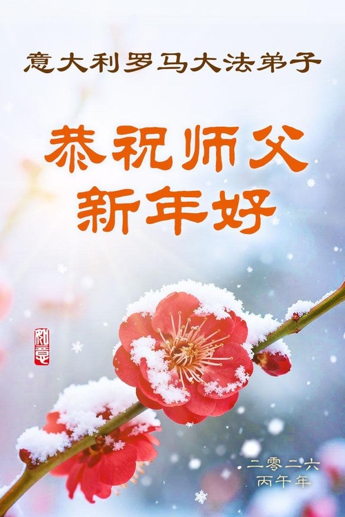 تمرینکننده فالون دافا در رم، ایتالیا، با احترام سال نو چینی را به استاد تبریک میگویند!