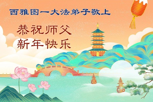 یک تمرینکننده فالون دافا در سیاتل، ایالات متحده، با احترام سال نو چینی را به استاد تبریک میگوید!