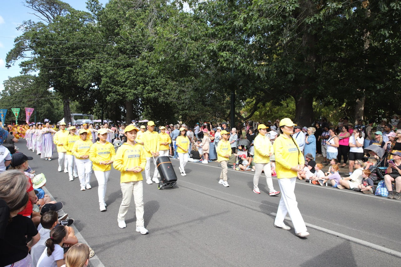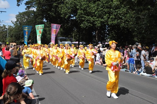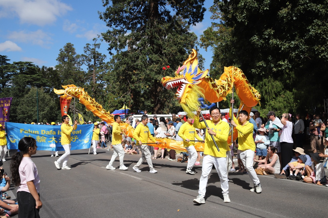 (Minghui.org) تمرینکنندگان شرکتکننده در رژه جشنواره بگونیا در بالارات در ۹ مارس ۲۰۲۶، فالون دافا را معرفی کردند. تماشاگران از نمایش تمرینات، طبل کمری و رقص اژدهای آنها لذت بردند.