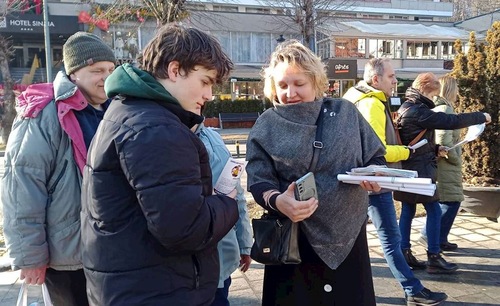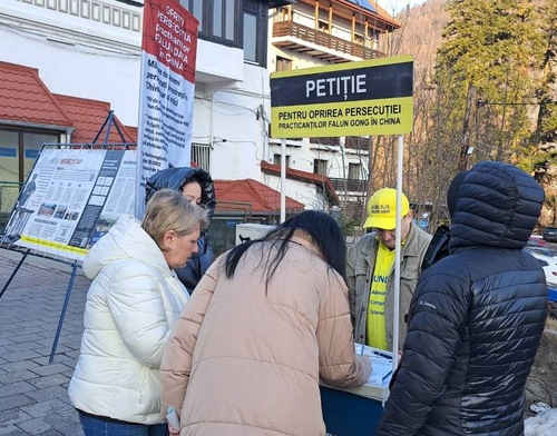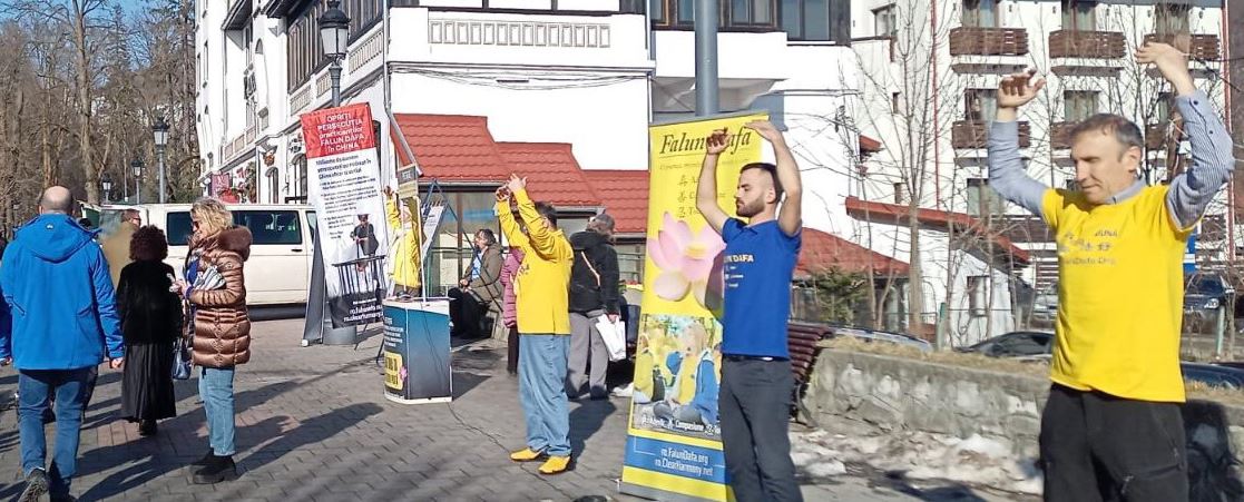 تمرینکنندگان از ۲۷ فوریه تا ۱ مارس ۲۰۲۶ یک غرفه اطلاعرسانی در سینایا، رومانی برپا کردند. آنها اجرای تمرینات را به نمایش گذاشتند و درباره فالون دافا با مردم صحبت کردند.