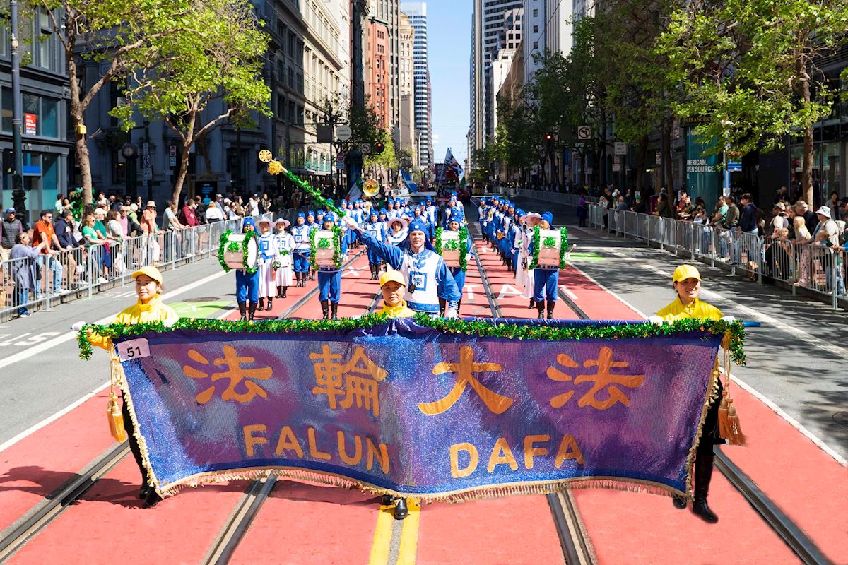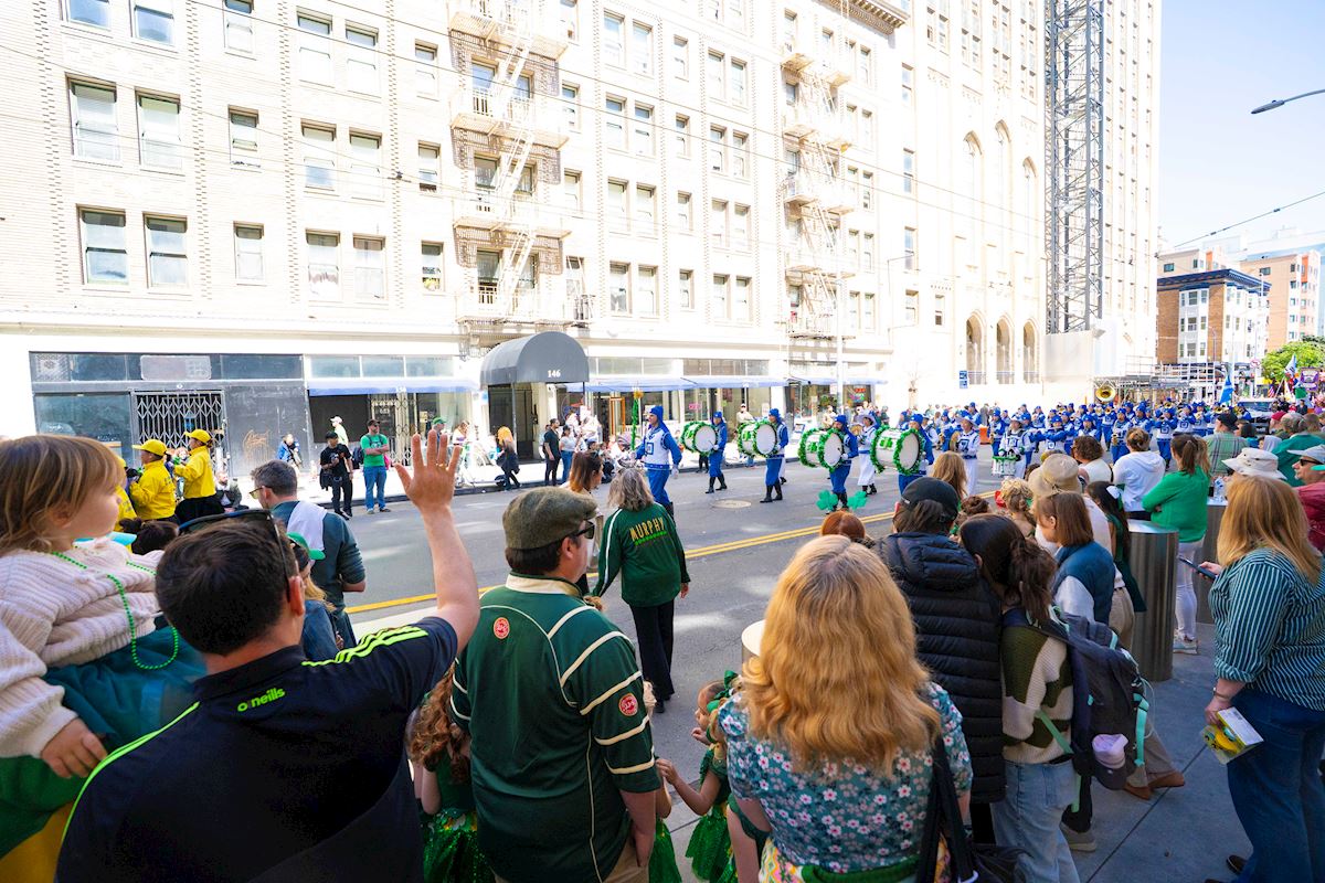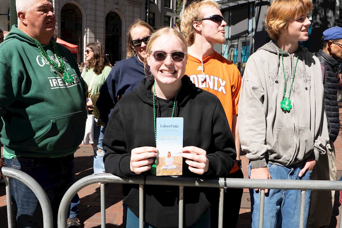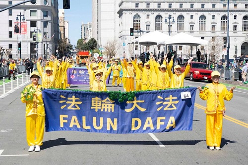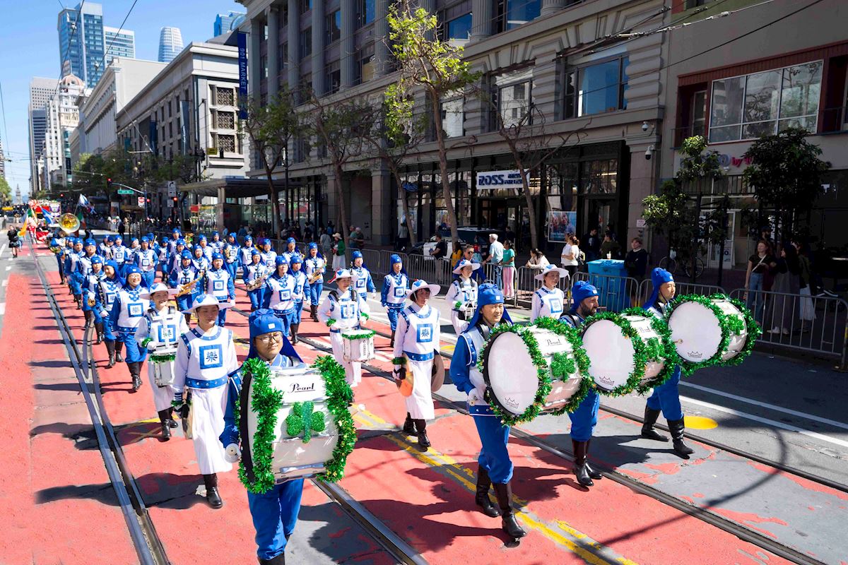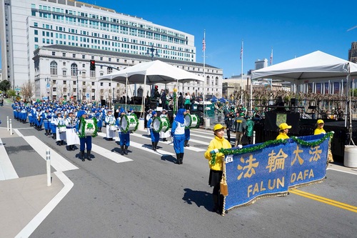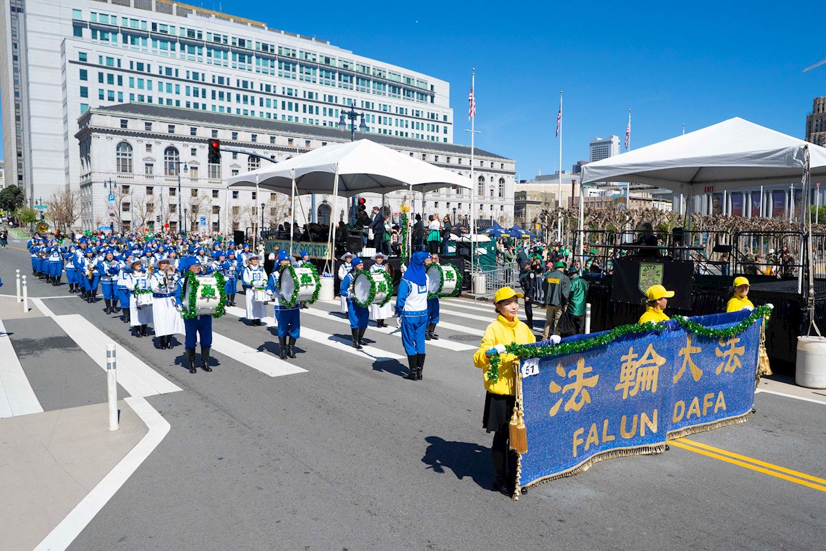 تمرینکنندگان فالون دافا در صد و هفتاد و پنجمین رژه روز سنت پاتریک در سان فرانسیسکو شرکت میکنند.