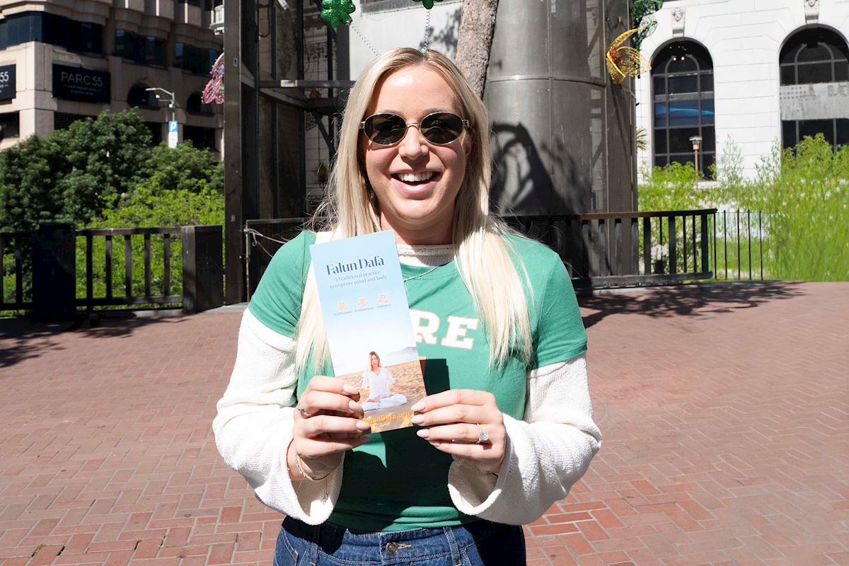 آنی یک بروشور درباره فالون دافا دریافت کرد.