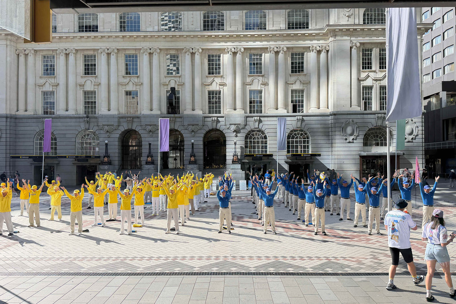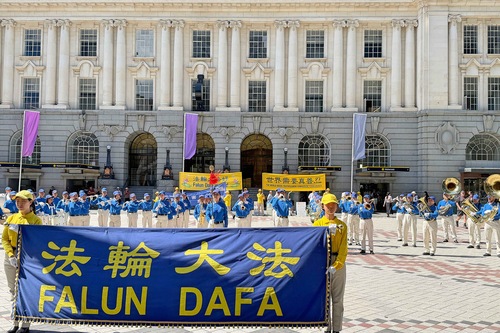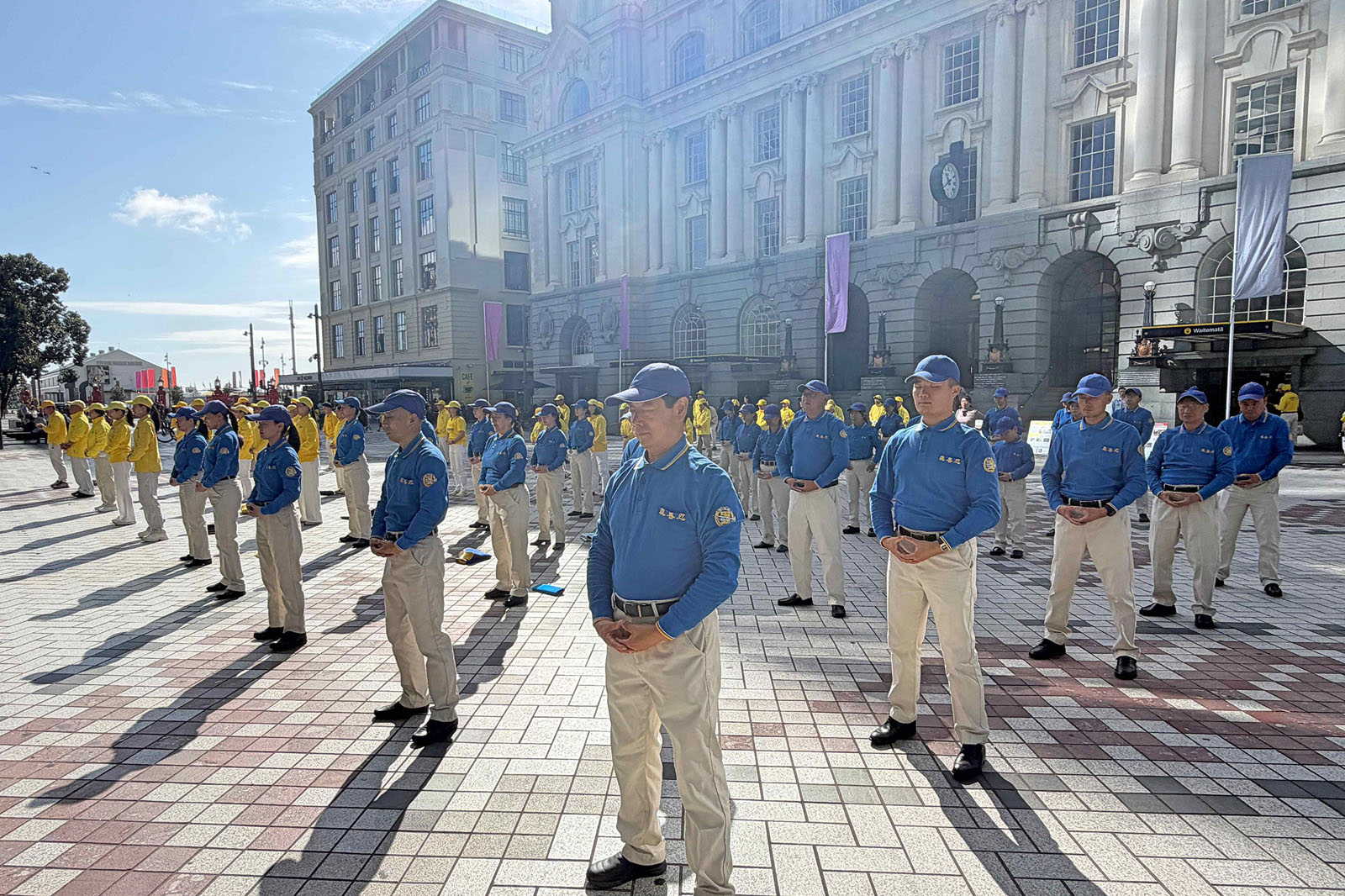 تمرینکنندگان در ۲۱ مارس تمرینات فالون دافا را در کامرشال بی انجام میدهند.
