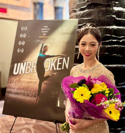 مراسم افتتاحیه مستند «شکستناپذیر؛ ماجرای ناگفته شن یون» در ۲۴مارس۲۰۲۶ در AMC مرکز لینکلن در منهتن برگزار شد. هفت تن از رقصندگان شن یون پیش از افتتاحیه، با پوشیدن لباسهایی الهامگرفته از سلسلههای باستانی چین، در مراسم فرش قرمز حضور یافتند. (اسکرین شات از شن یون زوئوپین)
