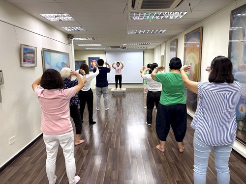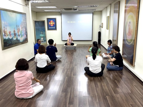 شرکتکنندگان تمرینات فالون دافا را یاد میگیرند.