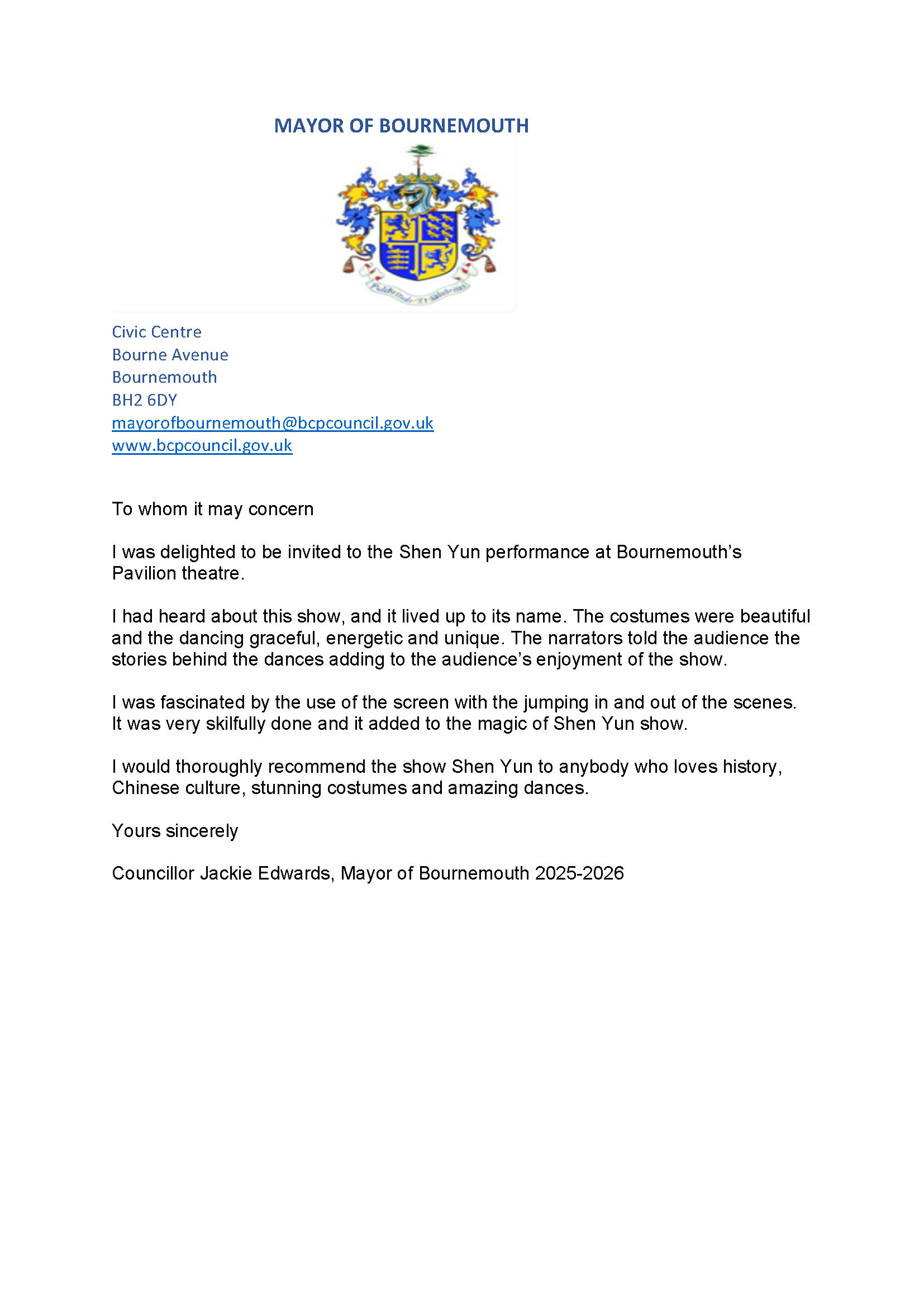 نامهای از جکی ادواردز، شهردار بورنموث