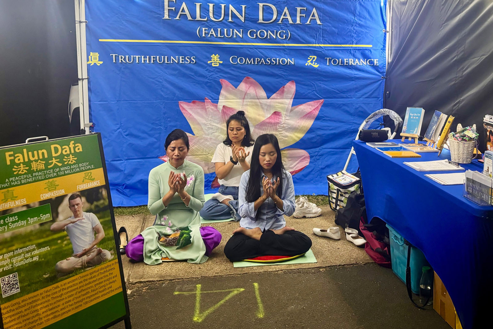 تمرینکنندگان با اجرای تمرینها و برپایی پوستر در غرفه فالون دافا، چگونگی بهبود ذهن و بدن توسط این تمرین را به تصویر کشیدند. آنها هنگام صحبت با رهگذران، تجربیات شخصی خود را از بهکارگیری اصول حقیقت، نیکخواهی، بردباری در زندگی روزمره و نتایج مثبت حاصل از آن به اشتراک گذاشتند. بسیاری از شرکتکنندگان که تحت تأثیر آرامش درونی حاصل از این تمرین قرار گرفته بودند، آموزههای فالون دافا را به خاطر کمک به بهبود بنیان اخلاقی جامعهمان ستودند.