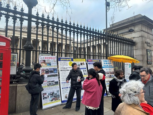 تمرینکنندگان برای کمک به مردم، بهویژه گردشگران چینی، تا درباره فالون گونگ آگاهی پیدا کنند و تبلیغات افتراآمیز ح.ک.چ را رد کنند، در نزدیکی موزه بریتانیا که یکی از مکانهای دیدنی محبوب است حضور دارند. آنها برای برگزاری این فعالیت مجوز دارند و تحت حفاظت پلیس لندن هستند.
