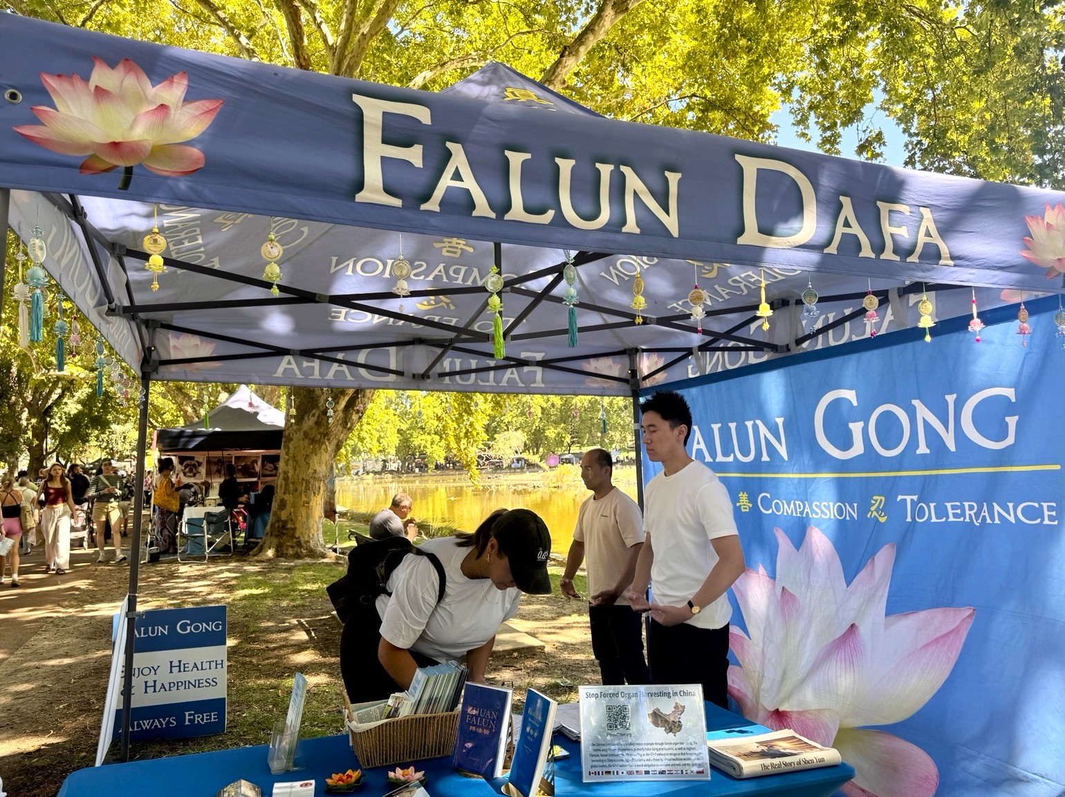 لسلی کولمن از اوشن ریف گفت که سال گذشته از غرفه فالون گونگ بازدید کرده و به صحبت یک تمرینکننده گوش داده است. او تحت تأثیر قرار گرفته بود. او امسال در غرفه فالون گونگ توقف کرد و گفت: «این غرفه ویژه است. من در حال گذراندن برخی چیزها در زندگیام هستم و میخواهم چیز جدیدی را امتحان و تغییراتی ایجاد کنم. شاید باید تمرین فالون گونگ را امتحان کنم.» او گفت افرادی که فالون گونگ را تمرین میکنند مهربان هستند و معتقد است که ما شاهد فقدان ارزشهای حقیقت، نیکخواهی و بردباری در این دنیا هستیم. او افزود: «آنچه این دنیا به آن نیاز دارد مهربانی است، نه کشتار بیرحمانه.»