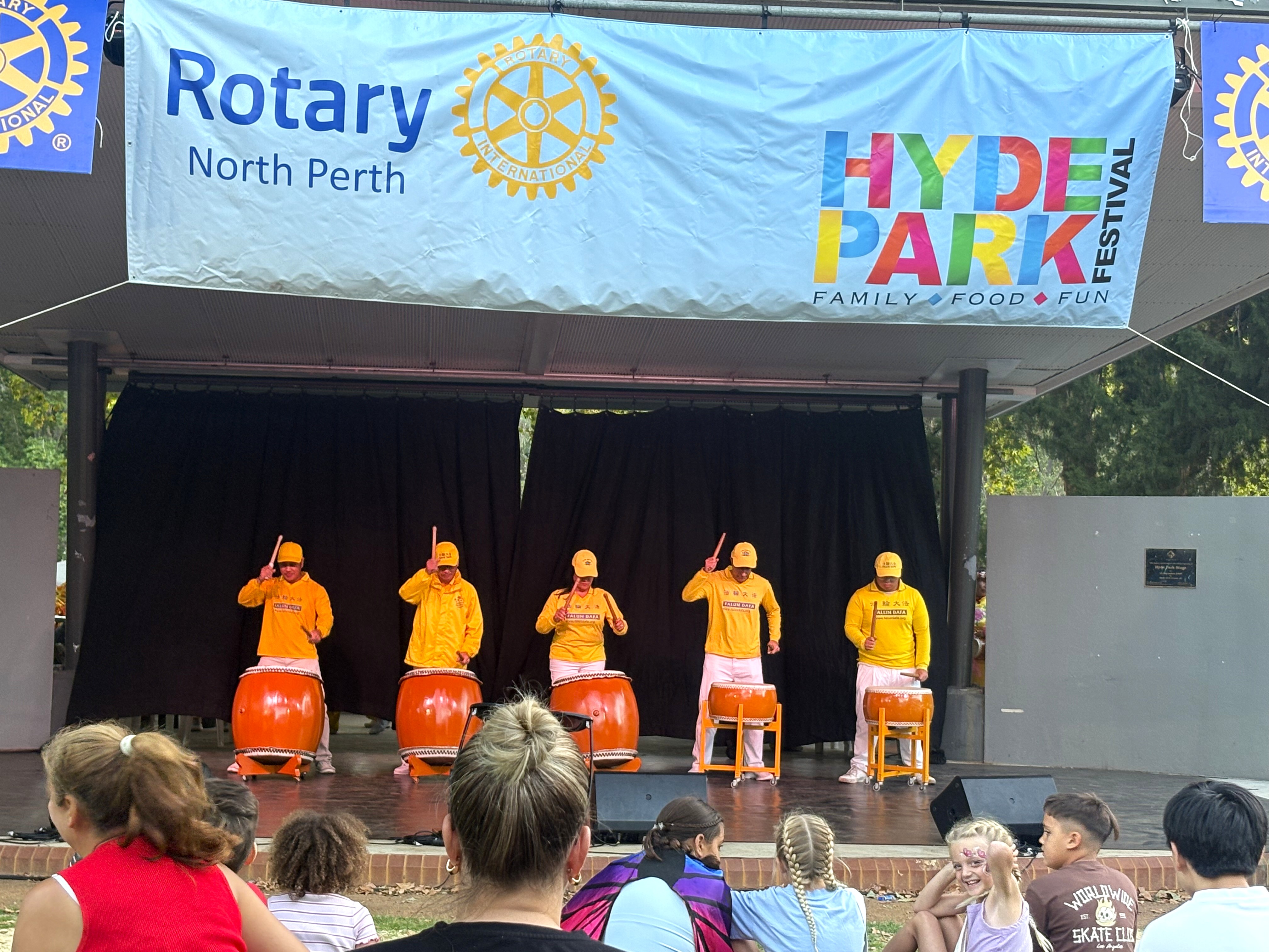 (Minghui.org) جشنواره سالانه هاید پارک در ۱ و ۲ مارس ۲۰۲۶ در پرت، استرالیا برگزار شد. از تمرینکنندگان فالون دافا (فالون گونگ) دعوت شد تا در این جشنواره شرکت کنند. آنها ارزشهای جهانی حقیقت، نیکخواهی و بردباری را معرفی و درباره آزار و شکنجۀ حزب کمونیست چین (ح.ک.چ) اطلاعرسانی کردند. آنها همچنین تمرینات را به نمایش گذاشتند و رقص اژدها، طبل کمری و رقص روی صحنه را اجرا کردند.