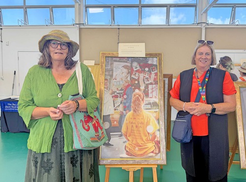 شارون (سمت چپ) و دوستش جودی نقاشیها را تماشا میکنند.