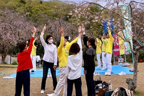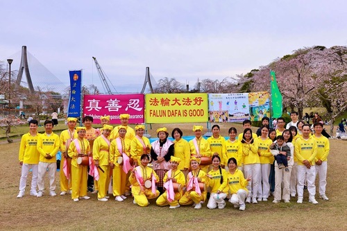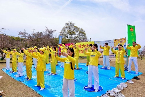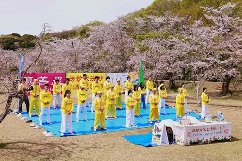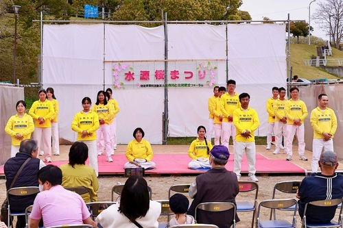 (Minghui.org) تمرینکنندگان در استان آیچی در سیودومین جشنواره شکوفههای گیلاس سوئیگن در شهر تویوتا در تاریخ ۴-۵آوریل۲۰۲۶ شرکت کردند. علاوه بر به نمایش گذاشتن تمرینات، تمرینکنندگان همچنین اجرای طبل کمری ارائه کردند و مطالب اطلاعرسانی توزیع کردند تا این تمرین را به ساکنان محلی و گردشگران معرفی کنند.