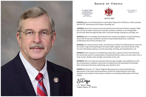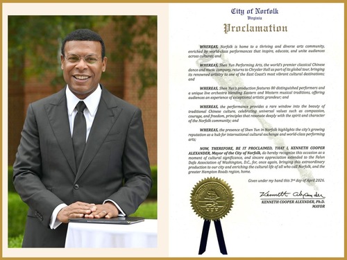 (Minghui.org) پیش از اجراهای شرکت هنرهای نمایشی شن یون در سالن کرایسلر در نورفک (ویرجینیا)، در ۲۲ و ۲۳آوریل۲۰۲۶، این شرکت از سوی مقامات منتخب در سطوح فدرال، ایالتی و شهری مورد تقدیر قرار گرفت.