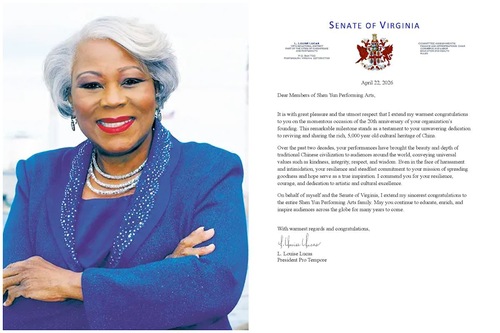 ال. لوئیز لوکاس، رئیس موقت سنای ویرجینیا، در نامهای به شن یون نوشت: