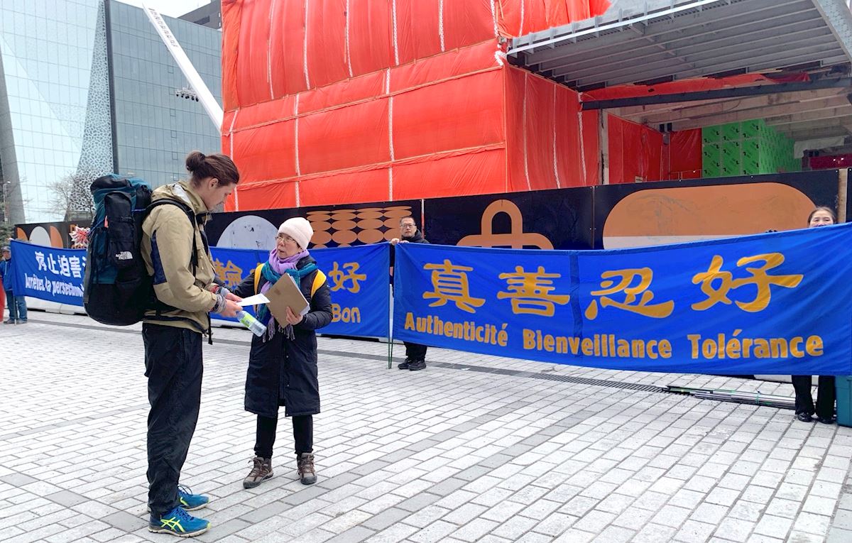 یک زوج بههمراه دو دخترشان، پس از گوش دادن به توضیحات یک تمرینکننده درباره واقعیتهای مربوط به فالون دافا، دادخواستی را برای پایان دادن به آزار و شکنجه امضا کردند. مادر گفت: «از اینکه این مسائل را به ما اطلاع دادید متشکریم.» این تمرینکننده یک آویز کوچک گل نیلوفر آبی به دختربچه داد و به او گفت که حروف چاپشده روی آن به این معناست: «فالون دافا خوب است» و «حقیقت، نیکخواهی، بردباری خوب است». اعضای خانواده با خوشحالی گفتند که این سه واژه، حقیقت، نیکخواهی، بردباری، بسیار خوب هستند.