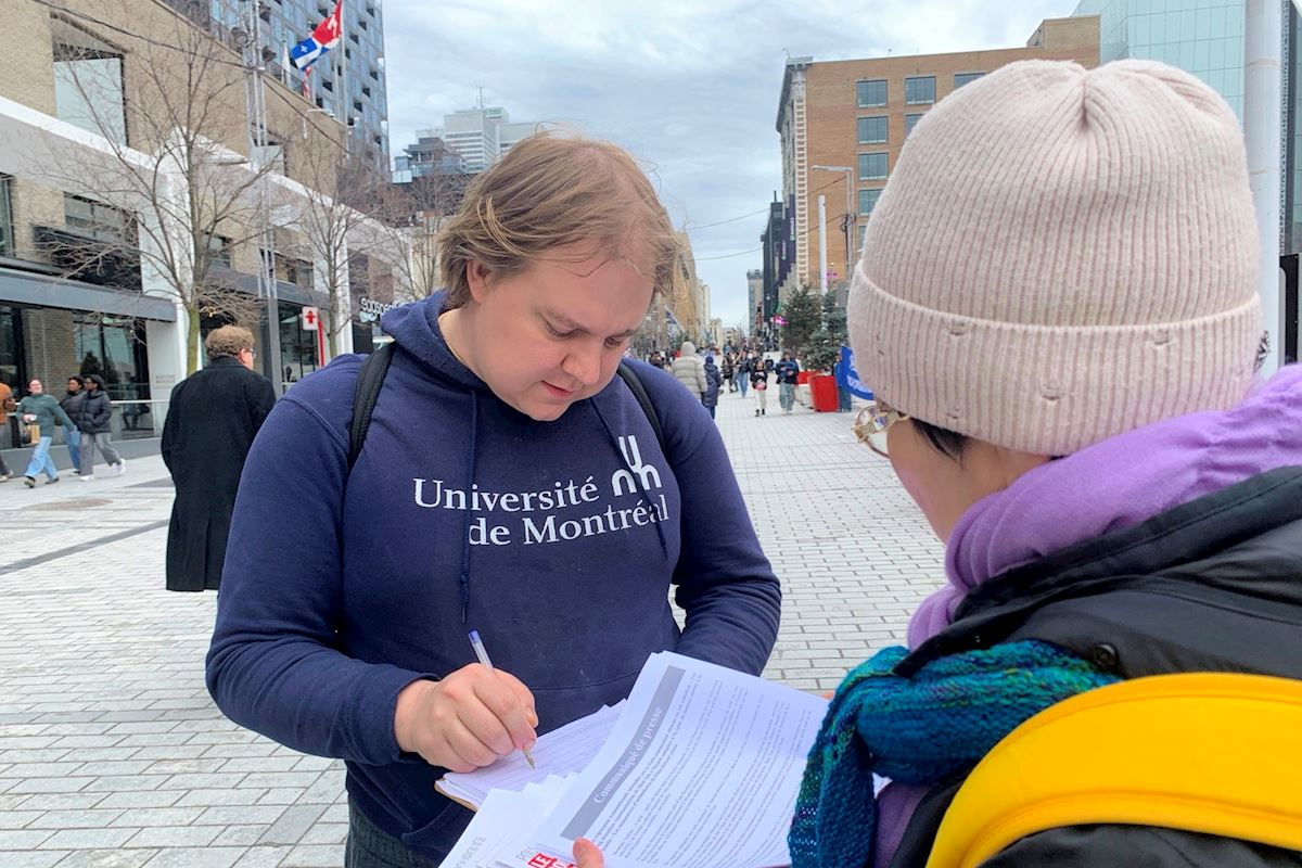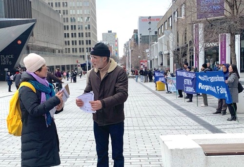(Minghui.org) تمرینکنندگان فالون دافا در آخرهفتههای آوریل، در روزهای ۴ و ۱۱آوریل۲۰۲۶، ضمن برگزاری فعالیتهایی در مرکز شهر مونترال (کانادا)، در این خصوص به مردم اطلاعرسانی کردند که چگونه حزب کمونیست چین (ح.ک.چ) تمرینکنندگان را در چین بهطور وحشیانهای تحت آزار و شکنجه قرار داده و این سرکوب را به خارج از کشور نیز گسترش داده است. بسیاری از مردم حمایت خود را از این فعالیتها ابراز کردند.
