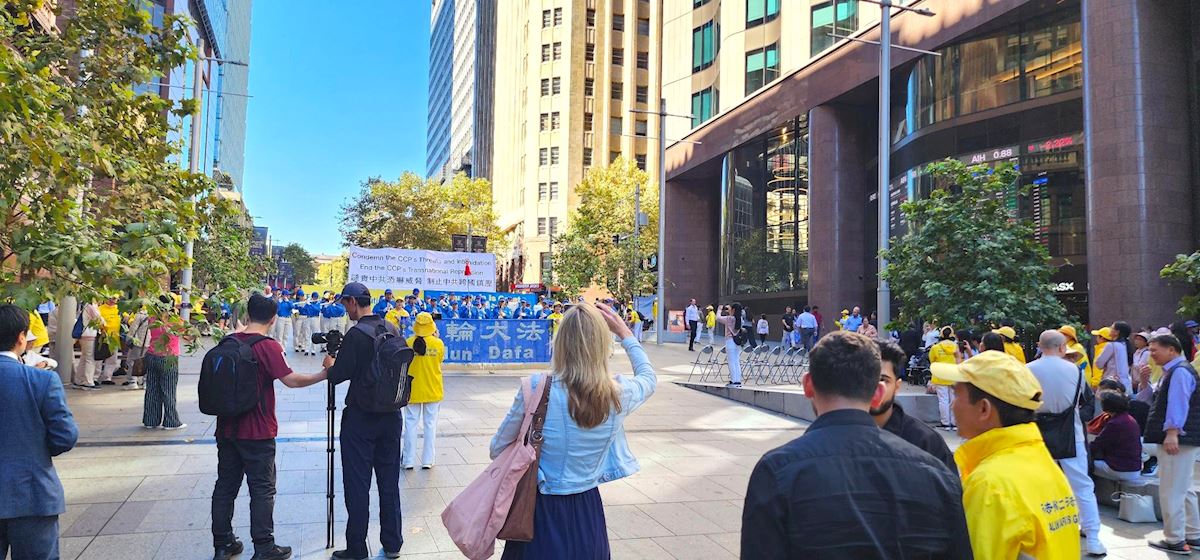 (Minghui.org) (ادامه از بخش ۱) برای گرامیداشت بیستوهفتمین سالگرد دادخواهی صلحآمیز ۲۵آوریل در پکن، تمرینکنندگان فالون گونگ در استرالیا، در ۱۶آوریل۲۰۲۶ تجمعی را در مارتین پَلیس، مرکز تجاری و مالی سیدنی، برگزار کردند.