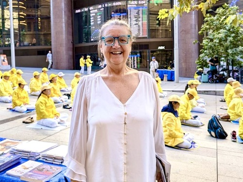 او گفت چنین رویدادهایی خوب هستند: «این واقعاً روشی بسیار روشن برای انتقال حقیقت است، زیرا بسیاری از استرالیاییها ممکن است هنوز با فالون گونگ آشنا نباشند. اگر بدانند که در چین، مردم صرفاً بهخاطر باورهایشان مجازات میشوند، فکر میکنم بیشتر استرالیاییها شوکه خواهند شد. نبود آزادی، ناتوانی در اندیشیدن، سخن گفتن یا انجام آزادانه باورهای مذهبی، برای ما واقعاً تکاندهنده است.»