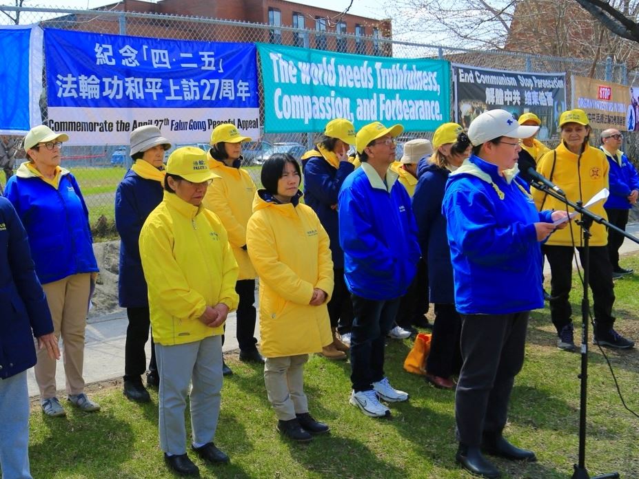 تمرینکنندگان در آن روز بیانیهای در تجمع ارائه کردند: «در حالی که امروز در اینجا ایستادهایم، بار دیگر یک اصل ساده و قدرتمند را تکرار میکنیم: آزادی عقیده یک حق بنیادین انسانی است که فراتر از همه مرزها، سیاستها و ایدئولوژیها قرار دارد و جهانیست. ما از دولت کانادا میخواهیم مانع سرکوب فراملی پکن علیه فالون گونگ در خاک کانادا شود.»