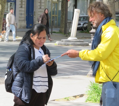 ماتیلد دودی، که در دانشگاه سوربن زبان انگلیسی تدریس میکند، گفت زمانی که بهمدت ۹ ماه در چین زندگی میکرد، افرادی را دیده بود که چیگونگ تمرین میکنند. او مدت طولانی با تمرینکنندگان گفتوگو و دادخواست را امضا کرد.