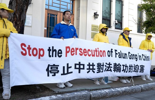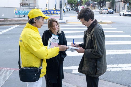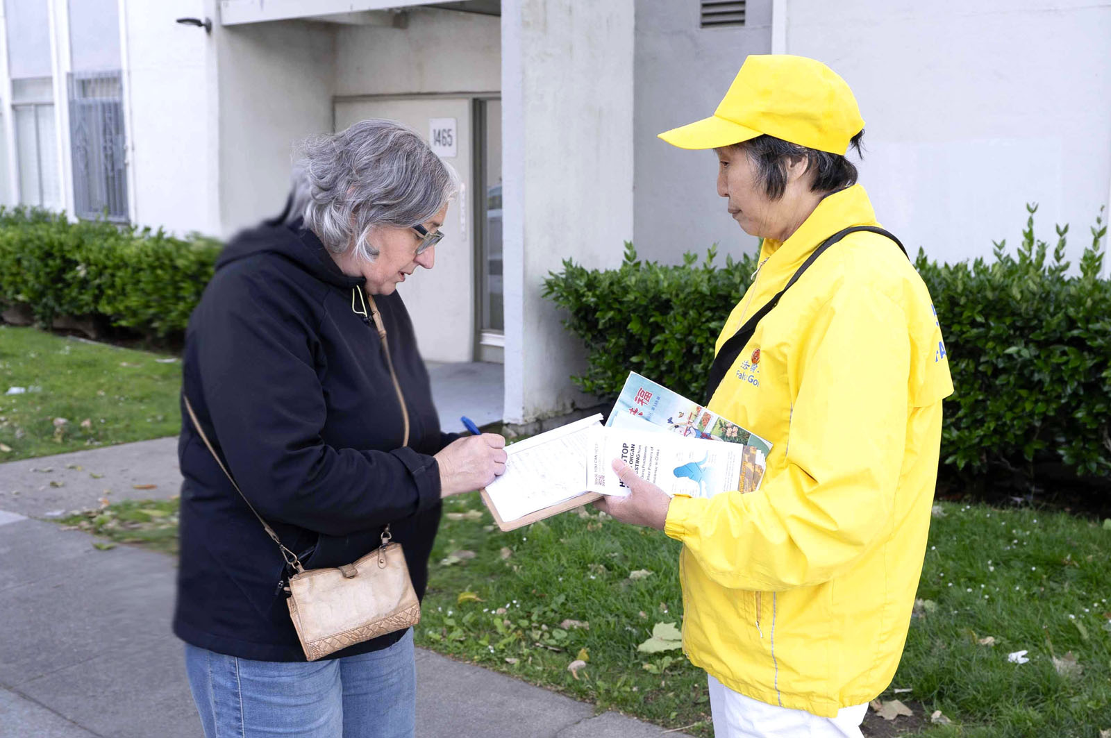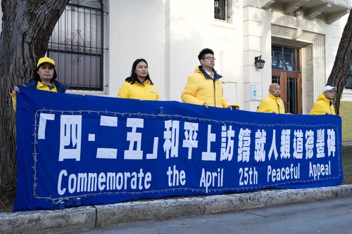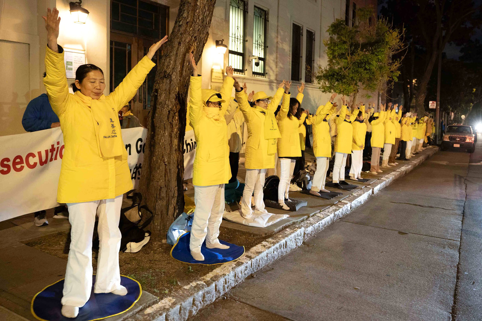 تمرینکنندگان در منطقه خلیج سانفرانسیسکو در ۲۴آوریل۲۰۲۶، تجمعی را در مقابل کنسولگری چین برگزار کردند تا دادخواهی ۲۵آوریل را گرامی بدارند.