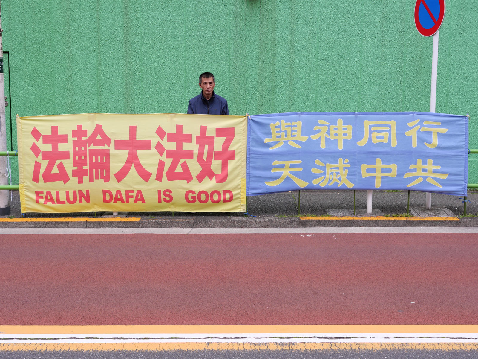 تمرینکنندگان در ۲۵آوریل۲۰۲۶ در مقابل کنسولگری چین در ناگویا اعتراضی صلحآمیز برگزار کردند.