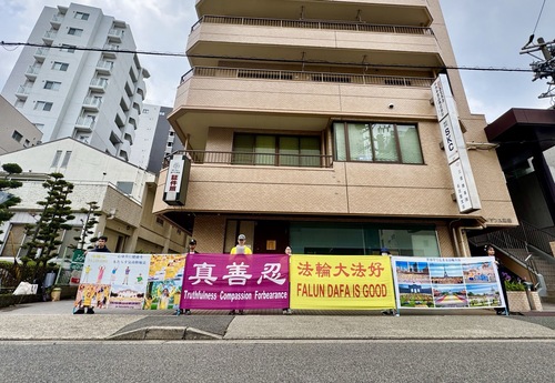 تمرینکنندگان در ۲۵آوریل۲۰۲۶ در مقابل کنسولگری چین در ناگویا اعتراضی صلحآمیز برگزار کردند و چهار بنر با این پیامها به نمایش گذاشتند: «فالون دافا خوب است»، «حقیقت، نیکخواهی، بردباری»، «فالون دافا در سراسر جهان گسترش یافته است» و «فالون گونگ برای سلامت جسم و ذهن مفید است.»