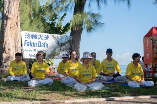تمرینکنندگان در ۲۸مارس در رئونیون، فرانسه رویدادی برگزار کردند تا فالون دافا را معرفی کنند.