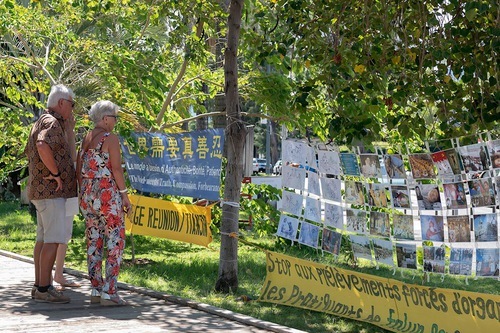یک زوج پوسترها را خواندند و با تمرینکنندگان گفتگو کردند. آنها که از شدت آزار و شکنجه شگفتزده شده بودند، گفتند این نقضهای حقوق بشر میتواند جهان را تهدید کند، زیرا ح.ک.چ نفوذ خود را در سطح جهانی گسترش میدهد. آنها دادخواستهایی را که خواستار پایان دادن به سرکوب، ازجمله برداشت اعضای بدن افراد زنده از تمرینکنندگان فالون دافا است، امضا کردند.